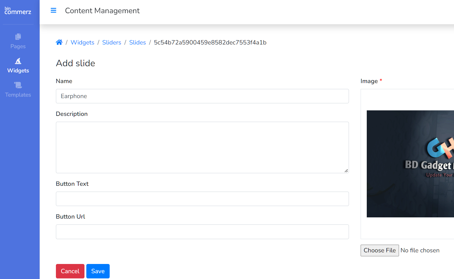 7. Add an image with a name and URL and click Save