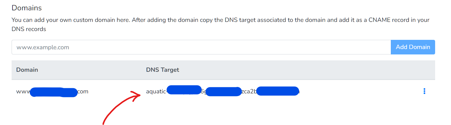 3. Copy the genrated DNS Target and add it as a CNAME in your domain name server