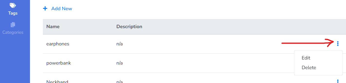 2. Click Add New button to create a new tag