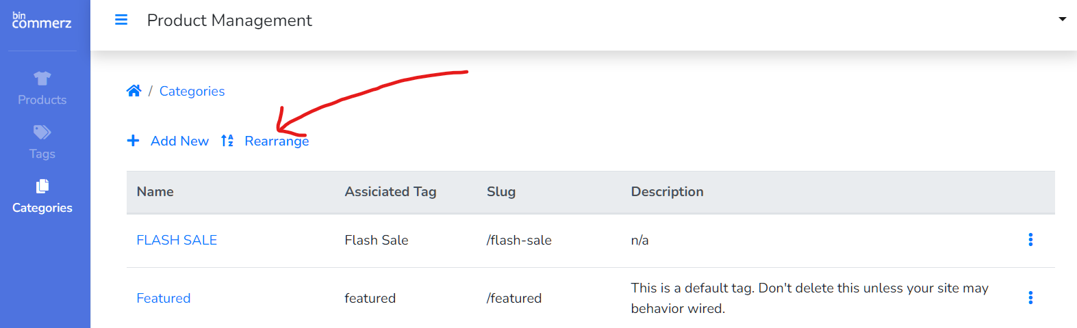 8. To order your categories you can go to "Rearrange"