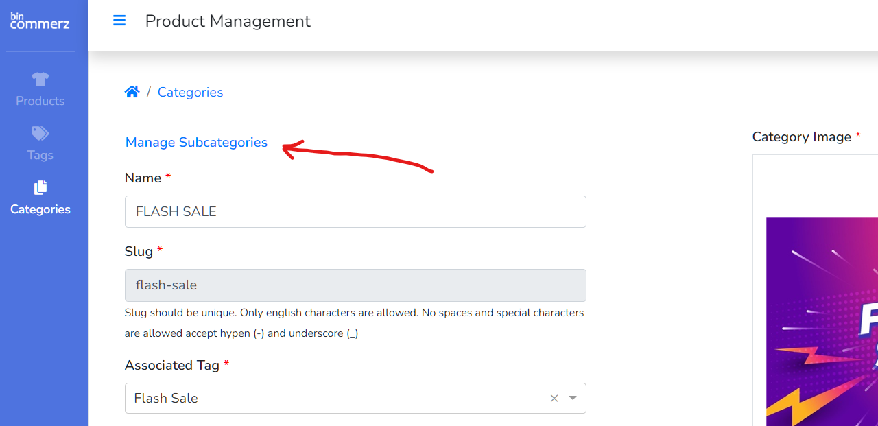 4. To add sub categories click any categories and click "Manage Subcategories"